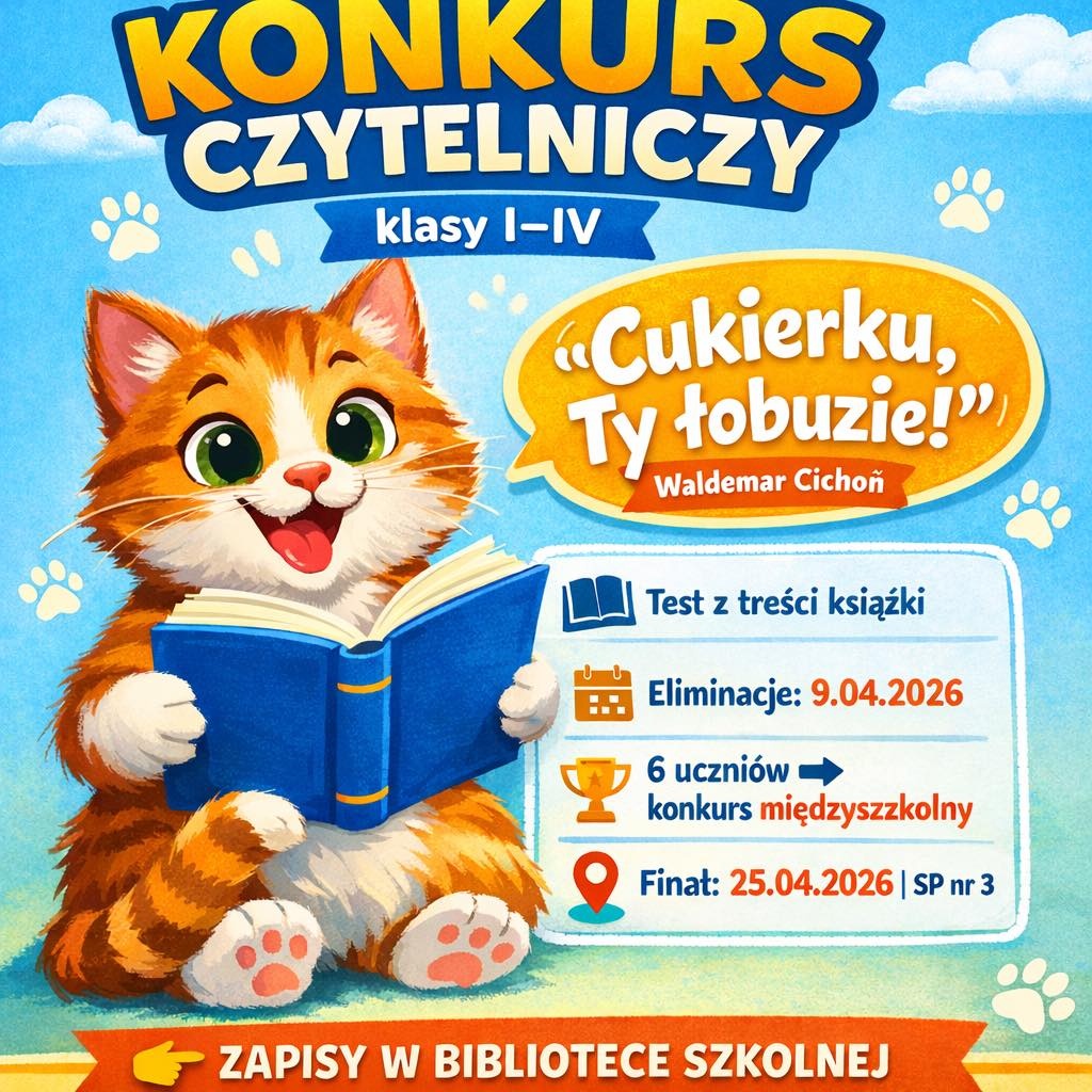 Biblioteka szkolna ogłasza eliminacje do międzyszkolnego konkursu czytelniczego dla uczniów klas I-IV
